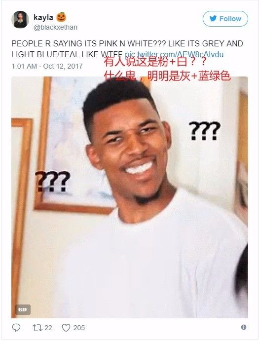 就在大家被到底是什么颜色整崩溃的时候,有网友放出了一张图,看完之后再看上边那张图,就会从灰绿党秒变粉白党