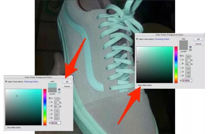 万能的网友也找到了这款鞋的官方原图,经过电子色彩提取,证实图片中的拖鞋实际上是蓝色和深蓝色。