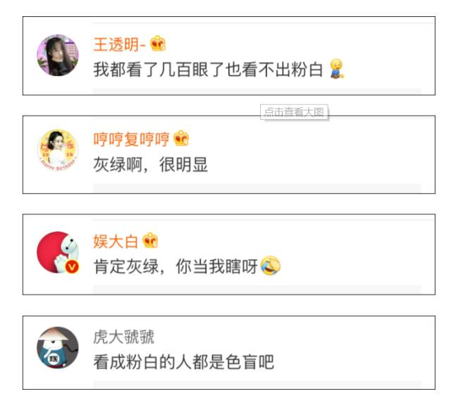 粉白党不服,表示你们这些灰绿党的大脑都不具备自动调色的功能,并向灰绿党甩出了颜色矫正后的照片,也确实是粉色+白色。