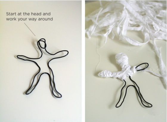 材料:铁丝,白色绷带或者白布(将白布剪成条即可),剪刀。