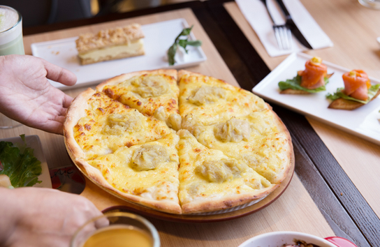 榴莲多多比萨终于等到你,还好我没放弃~榴莲+芝士,浓浓黏黏热热,绝配!连我不吃榴莲的男票都吃了三大块!可惜还是觉得榴莲肉少,pizza尺寸固定不能升大,怎么破!