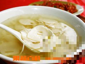 (5)将处理过的竹笙切段投入熬好的竹笋鸡汤,继续煮10分钟即可上桌。