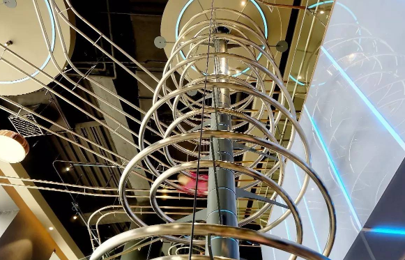 失重餐厅和普通吃饭的餐厅不同,它没有服务员点餐上菜,你肯定好奇那怎么用餐,它是有黑科技的无人轨道上菜系统哦,17秒把菜送到食客面前!