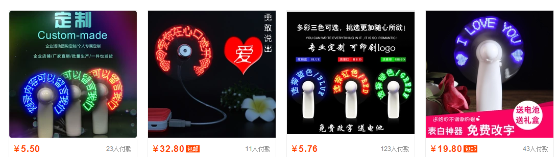 淘宝就有卖的,搜索“led闪字风扇”有贵的也有便宜的哦!请自行辨别!