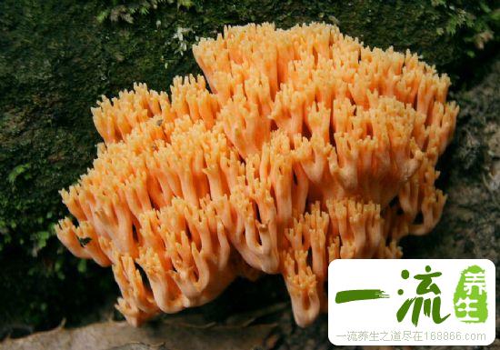 珊瑚菌又名“扫帚菌”;该菌体形俊俏,色泽秀美。珊瑚菌科Clavariaceae各属含有不少质地脆嫩、别具风味的食用菌,是我国野生食菌资源中不可忽视的组成部分。珊瑚菌有很多的品种,颜色艳丽,有红、黄、白等色。像葡萄状枝瑚菌、葡萄状珊瑚菌都可以食用,一般别名帚菌、刷把蕈、扫把菌、笤帚、红扫把。珊瑚菌的子实体由基部生出多回分枝,基柄粗大,圆柱状或柱状团块,光滑,基部白色,具粉状斑点手压后变褐色;菌肉白色,有蚕豆香味;由基部向上分叉,中上部呈多次分枝,成丛,淡粉色、肉桂红色,顶端呈指状丛集,蔷薇红色,老时肉褐色,孢子狭长,脐突一侧压扁,有斜长的斑马纹状平行脊突。