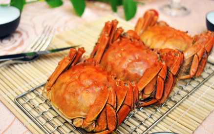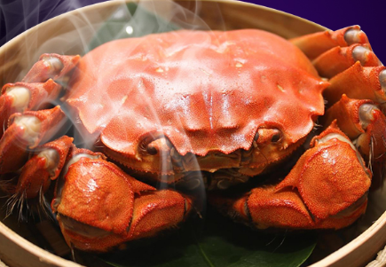 阳澄湖大闸蟹产于苏州阳澄湖,蟹身不沾泥,俗称清水大闸蟹,体大膘肥,青壳白肚,金爪黄毛,煮后呈亮橘红色,肉质膏腻,口味鲜甜。农历九月的雌蟹和十月的雄蟹最佳。煮熟凝结,雌者成金黄色,雄者如白玉状,滋味鲜美。