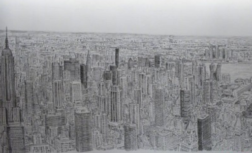 当地时间11日,在乘直升机于曼哈顿上空飞行45分钟后,英国艺术家斯蒂芬·威尔夏凭记忆画出纽约全景图!历时5天,于16日举办落款仪式。威尔夏从小患自闭症,除画功了得,还有惊人的记忆力,曾凭记忆画过香港、东京、伦敦等8座城市的全景
