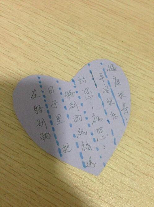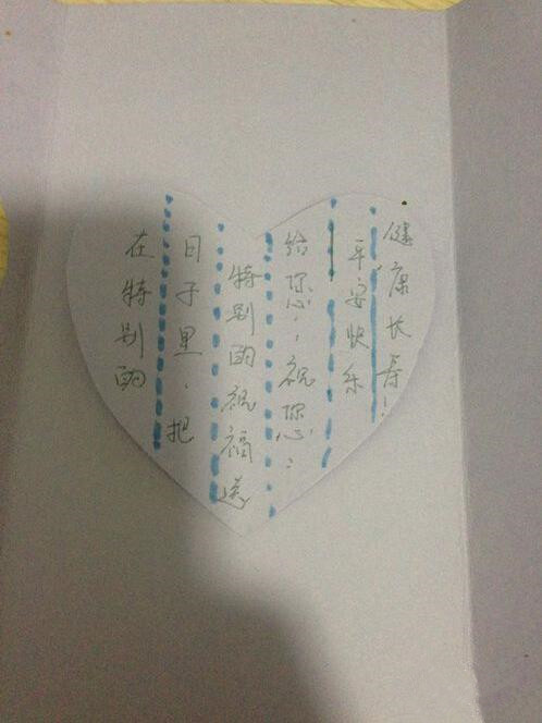 第四步:在剪下来的小爱心桃形状的卡纸上写上祝福的话