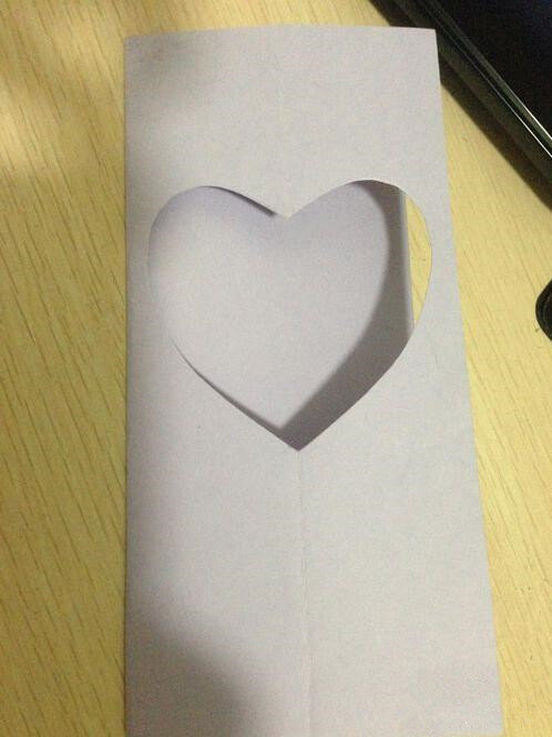 第五步:把写有祝福话语的爱心卡纸,贴在贺卡最里面