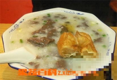 制作:米洗干净.起锅煮水滚放米大滚然后开小火慢炇成稀粥(煮到不见米,米水合一),下盐,糖,味精,放猪红滚约三分钟后熄火,吃时加些姜丝,洒些葱花,胡椒粉拌油条.喜吃辣者可加些老干妈辣酱.