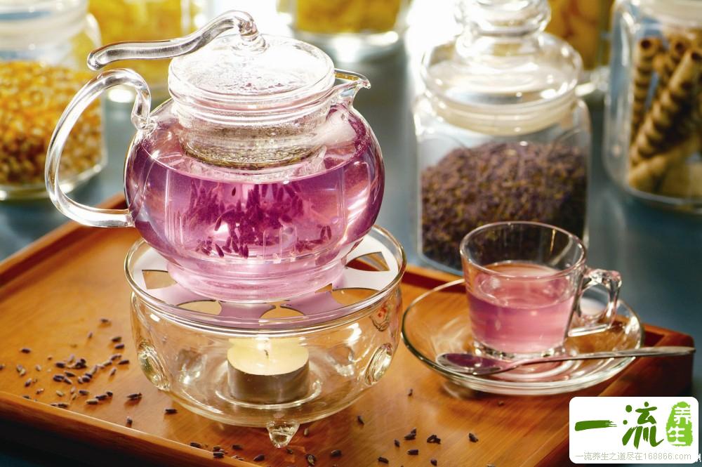 薰衣草茶是以干燥的花蕾冲泡,取一大匙放进壶中,再倒入沸水,只需焖5分钟即可享用,不加蜂蜜和砂糖也甘香可口。 这道茶的浓香使人愉悦,不带副作用,并具有镇静、松弛消化道痉挛、清凉爽快、消除肠胃胀气、助消化、预防恶心晕眩、缓和焦虑及神经性偏头痛、预防感冒等众多益处,沙哑失声时饮用也有助于恢复,所以有“上班族最佳伙伴”的美名。