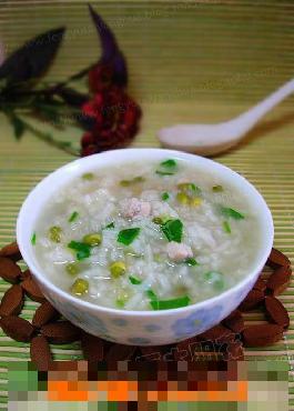鸡粒青菜绿豆粥