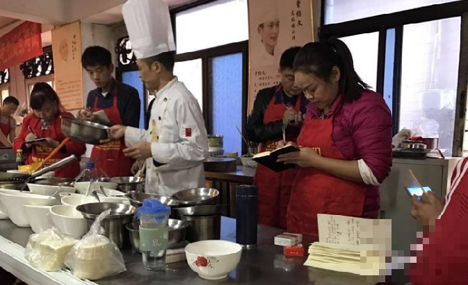 “我8号来的,每天早上五点半起床,下午5点才结束学习,今天(17日)小面考试,师傅尝了我的面评价‘很到位’。”来自成都的小伙王银林告诉记者,小面的核心技术算是出师了,接下来会实践结合理论一段时间,准备后续在成都开加盟店的事宜。
