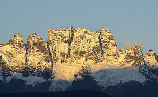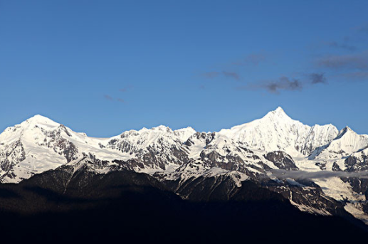 到飞来寺或雨崩欣赏梅里最佳季节是冬季,可以看到难得一见的日照金山。