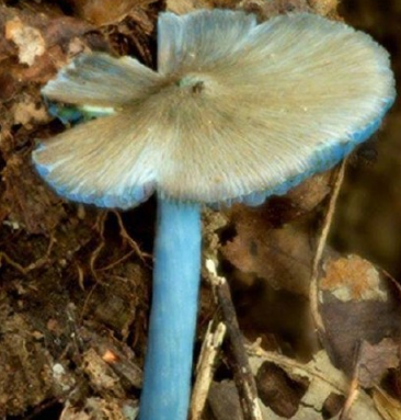 虽然“勐宋粉褶菌”是蓝色蘑菇,但它仍具有粉褶菌属的典型特征,即:菌褶呈粉红色,只不过全身包括菌柄在内都呈蓝色,这使得它明显区别于其他同类,也格外吸引人们眼球。