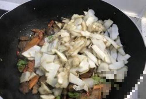 4、洋姜在炒的时候搭配适量的五花肉,也特别好吃,五花肉在洗净以后切成薄片可以加生抽蚝油腌制半小时,然后再把洋姜切成片状,在炒锅中放适量食用油,加入葱,蒜和辣椒炒香,随后把五花肉入锅,炒到透明状,再把洋姜肉锅翻炒均匀,放生抽食用盐调味,炒熟以后出锅可以直接吃。