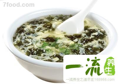 紫菜海带汤:去脂减肥。由紫菜、海带辅以冬瓜皮和西瓜皮做成,适合体胖的女性经常饮用,可达到瘦身塑形的效果。因紫菜和海带含丰富的膳食纤维,且热量很低,再加上具有利水效果的冬瓜皮、西瓜皮,减肥效果会更加明显。