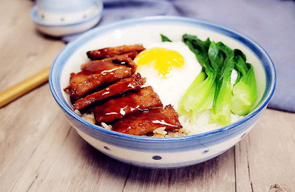 不过现实中广东的这种饭,最后淋上了酱油,而且做法有一些区别,他的饭是直接盖上去的,不需要再来炒的,后面还会加上一个油煎的鸡蛋配上,既好吃又好看。