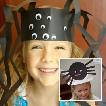用卡纸做一个蜘蛛帽,孩子戴上搞怪又可爱~