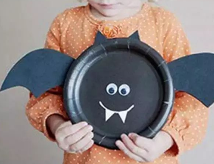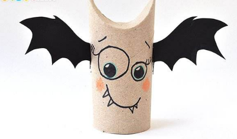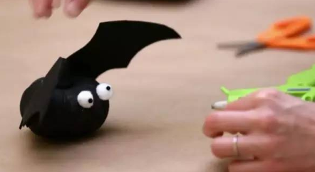 最后粘上棉花做的眼睛、卡纸做的翅膀,南瓜小蝙蝠就做好啦~