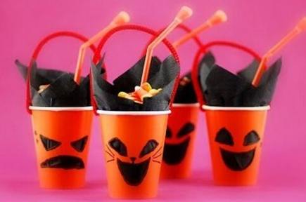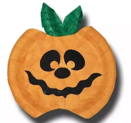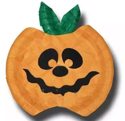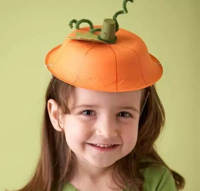 万圣节不一定要恐怖哦,可爱的也很应景,一次性盘子图上橘色颜料, 再粘上绿色卡纸做的叶子,南瓜帽送给萌萌的孩子~