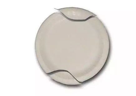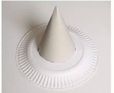 剪去一次性盘子的中间部分,将做好的帽子套在一次性盘子里~