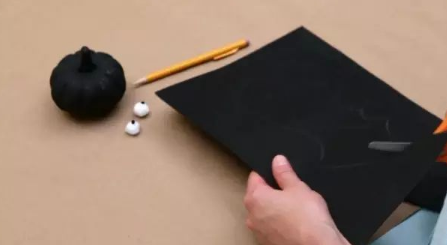 在黑色卡纸上画出蝙蝠翅膀后,剪出~
