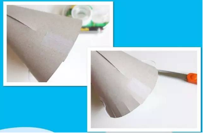 先用白色卡纸卷成漏斗装,再将漏斗的底部剪成条状~
