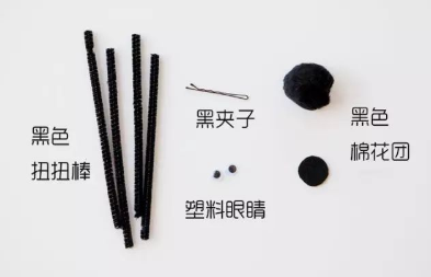 黑色扭扭棒是用来做蜘蛛腿哦,没有它就做不出万圣节的感觉啦~