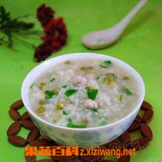 鸡粒青菜绿豆粥
