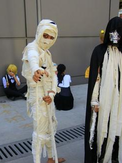 虽然说木乃伊是埃及的传说,但随着关于埃及木乃伊电影的大量普及,这一装扮也越来越受到欢迎。做为法老的守护者,化妆也是一门学问,绷布的缠绕也是很有讲究的,缠的好是木乃伊,缠的不好就是刚刚出院的重病号。