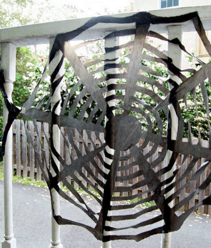 塑料袋完全展开后就是一张蜘蛛网了,蜘蛛网的大小取决于塑料袋的大小,做好后将其粘贴固定在自己想要的地方去吧!