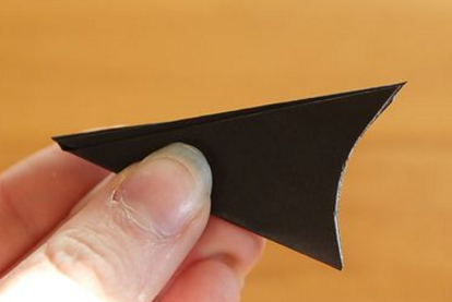 8.现在可以剪了。用剪刀在三角形的顶上,剪一个拱形的缺。