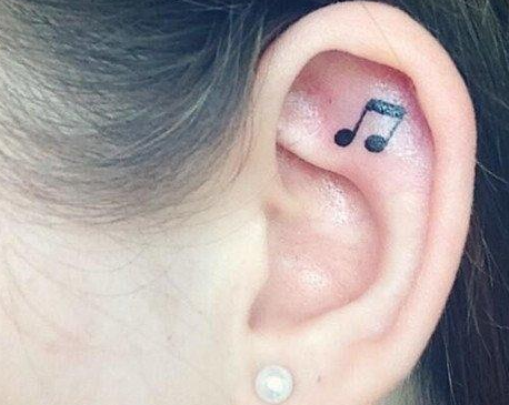 如果你喜欢扎高马尾,那么纹在耳后最合适。耳廓内侧与耳洞相结合更有创意。