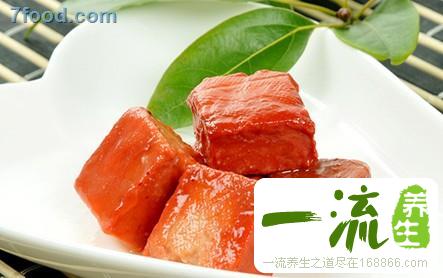 用几块红豆腐乳,多放点卤汁压碎加一些黄酒调匀涂在肉上,再放入砂锅里加葱姜和原来煮肉的汤,用小火慢慢烧烂后加入冰糖,待汁变稠浓就可以了。此肉肥而不腻,香味扑鼻,令人食欲大增。