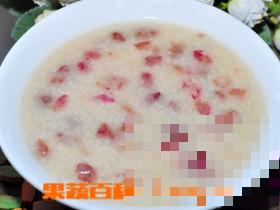 1,淘洗干净的小米,连同温水,冰糖,红枣,泡过的花生,一起煮开,并适当搅拌;