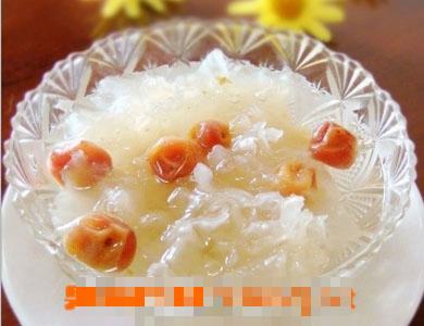 1.粳米250克,白木耳15克,加水适量,共煮成粥。