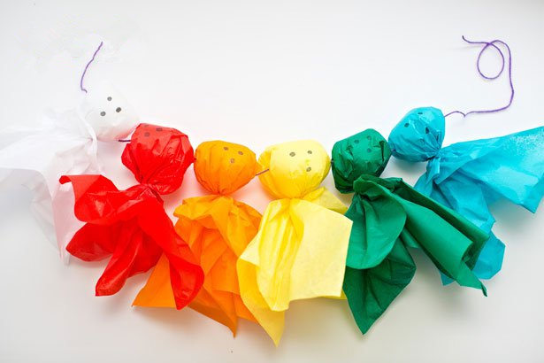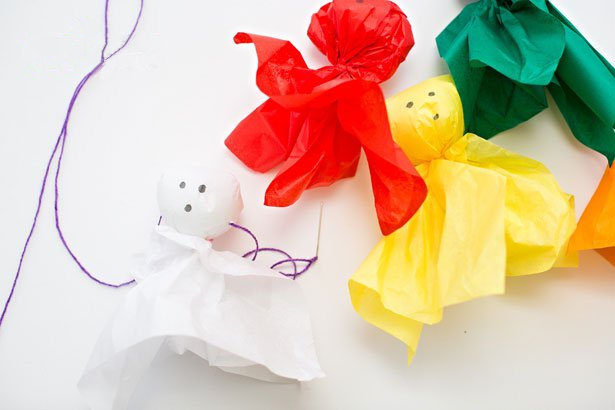 同样的方法可以多做一些小幽灵出来,贴在墙壁或者串起来挂在合适的位置都很不错哦!