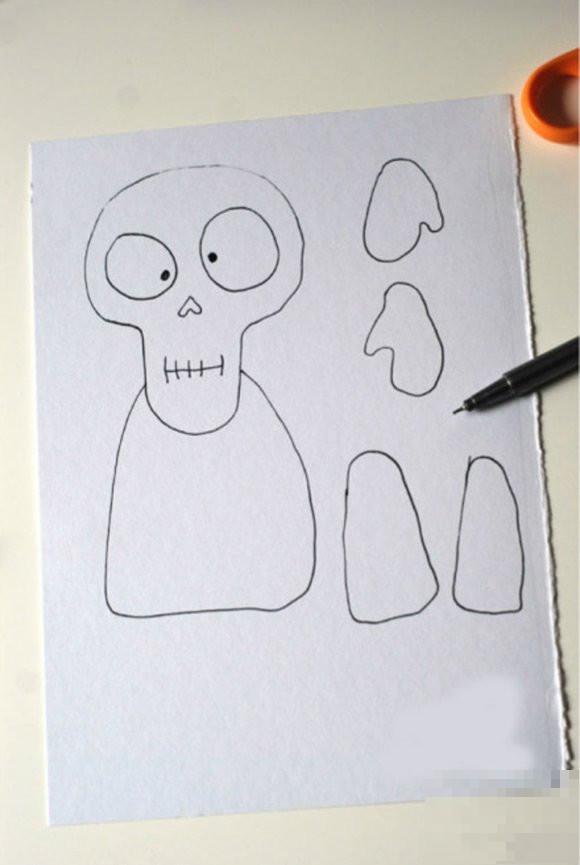 第一步:首先在卡纸上画出骷髅,如图,剪裁好待用