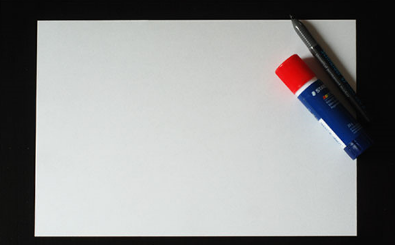 材料:白纸,黑色写字笔,胶棒,绳子。