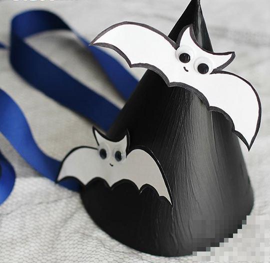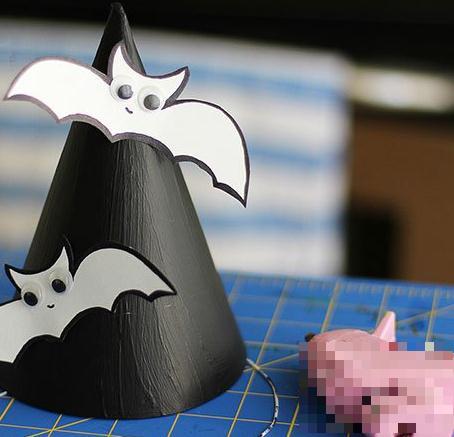 第五步:看帽子的颜料有没有干掉,然后在帽子上贴上两刀三只做好的小蝙蝠。