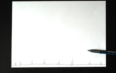 第二步:用黑色写字笔在白纸的下面边缘处画一些细微的长短线,线条不用太直,让白纸突出褶皱的感觉。