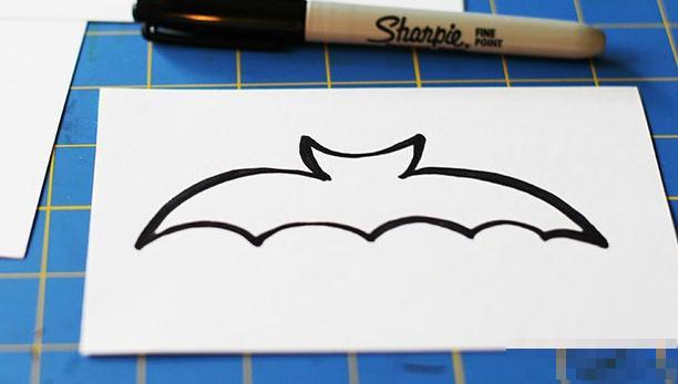 第二步:在白色卡纸上画出蝙蝠的基本外形,建议使用粗的黑色油性笔。