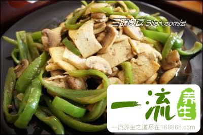 [配料] 豆腐1块,青椒3个,香菜10克,香油、盐、味精各适量。