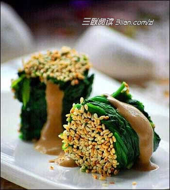 [配料] 鲜菠菜500克,熟芝麻15克,盐、香油、味精各适量。