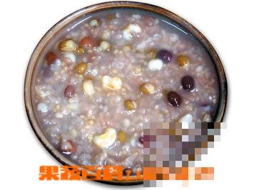 5.八宝粥放入食材的顺序:一般最难煮的最先放入,如豆类等;最容易熟的桂圆,红枣,核桃等在最后才放入。每放入一次食材,就应该搅拌均匀一
