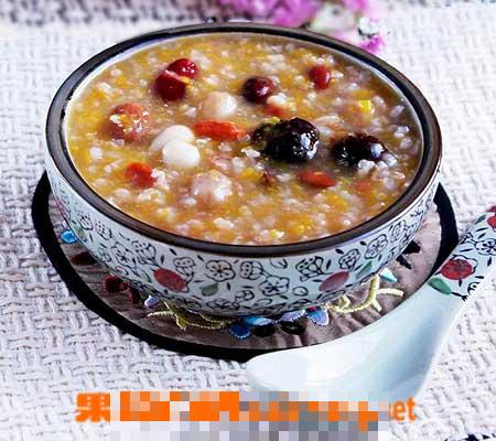 2、锅中加水14000克烧开,下入混合后的两种米,大火煮25分钟后,下桂圆、大枣再煮20分钟,改小火煮15分钟,即可出锅。