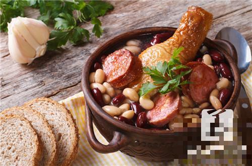 2、黄豆牛骨汤:首先将黄豆、牛骨洗净后待用;牛骨加入锅中焯水后捞出洗净沥干待用;锅中加入适量的清水然后加入姜片煮开后将牛骨、黄豆一起加入锅中,倒入适量的料酒大火煮开后转至小火慢煮2个小时左右即可加入适量的调味品食用。