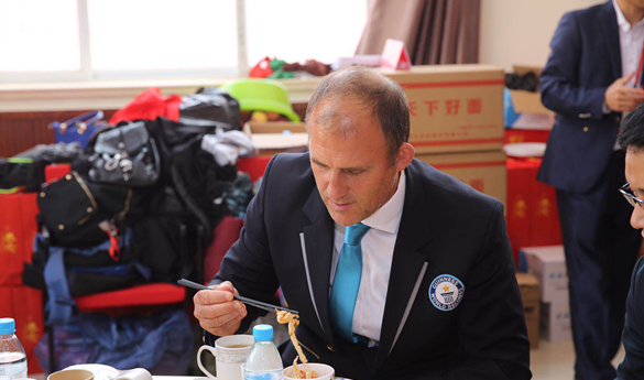 在挑战活动结束后,John Garland先生也和在场的长寿老人们一起,饶有兴致地一起分享了这份特殊的长寿面。