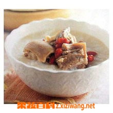 2.把羊肉洗净切碎,枸杞煎汁去渣,同羊肾、羊肉、葱白、大米一起煮粥。
